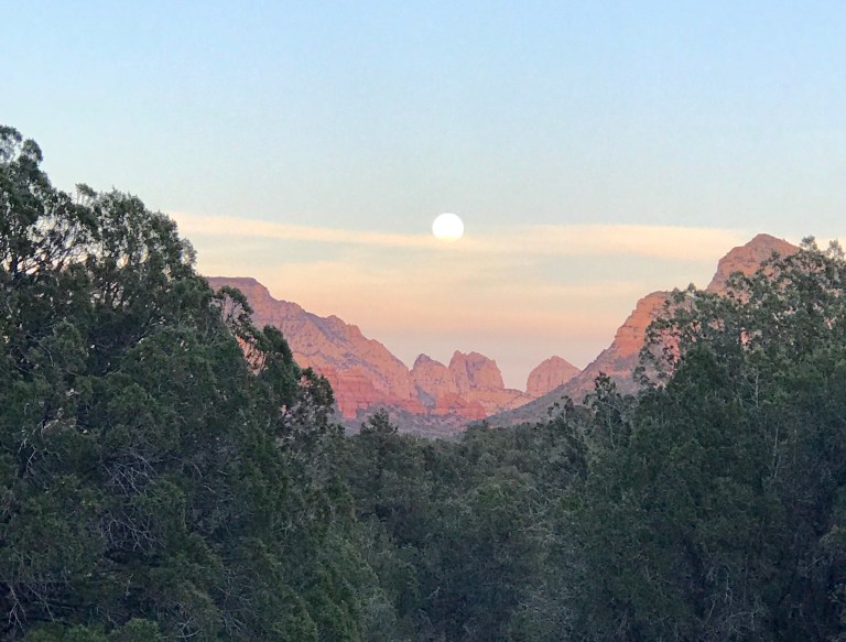We couldn’t resist taking Sally out for a spin to see the beautiful Sedona rocks at sunset last night…and then we realised it was also a full moon! Yay!